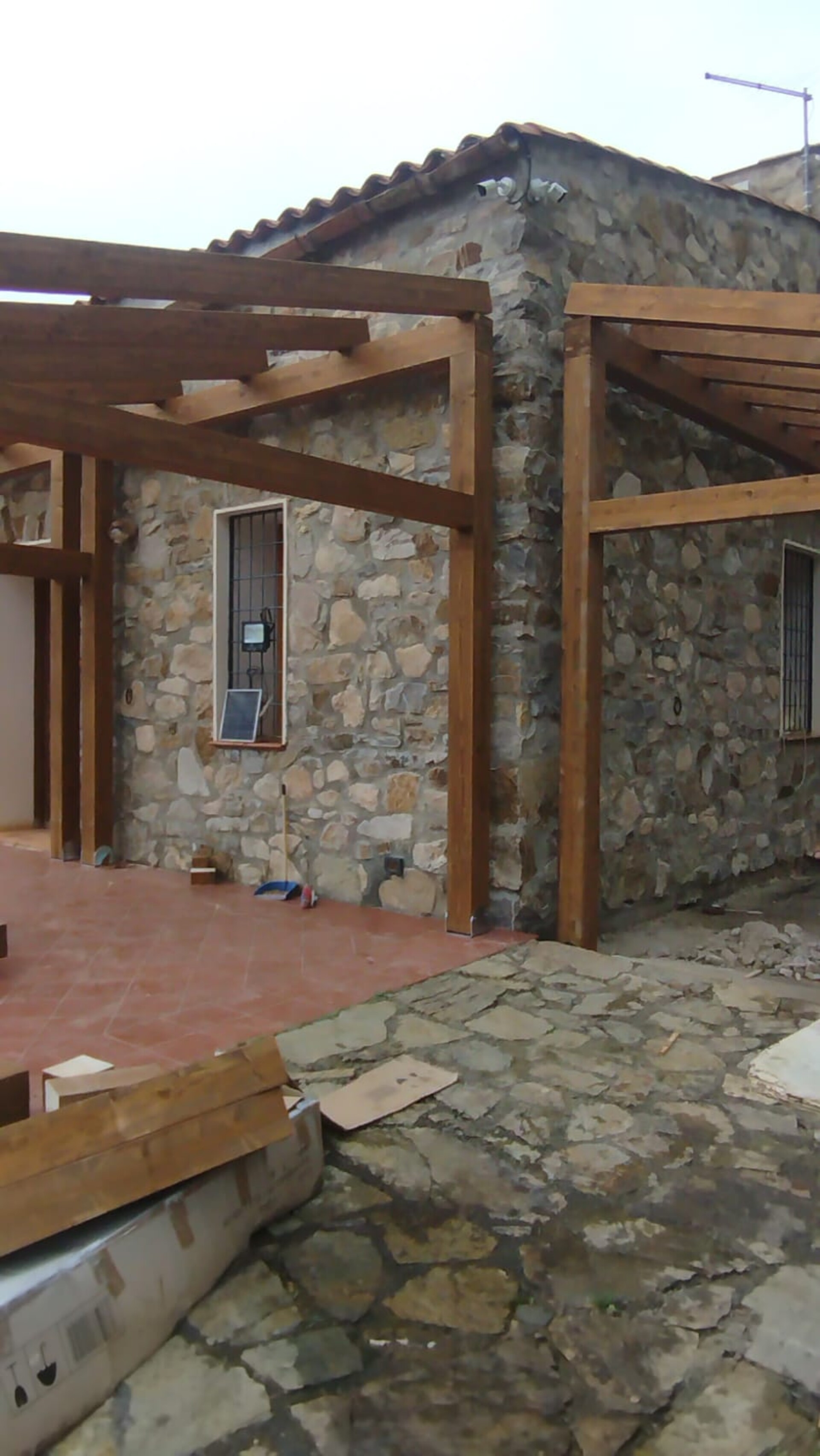 Tettoia con lamellare e tegole portoghese