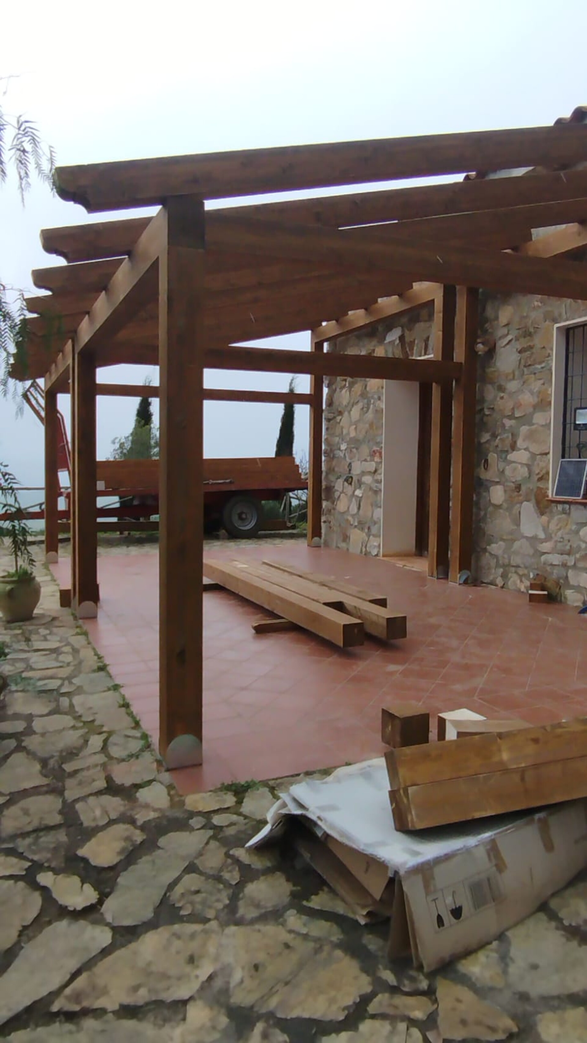 Costruzione tettoia con travi lamellari